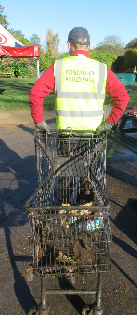 Litter picking in the Park recently focused on cleaning debris from the River Chor and although many stretches were surprisingly clear of discarded items Friends volunteers did unearth two shopping trolleys! One is pictured below. See also our ‘Riverfly’ article explaining how we intend to sample the quality of the river water environment. That initial training session revealed the river in quite good condition, but we need to be vigilant to spot any pollution incidents.
