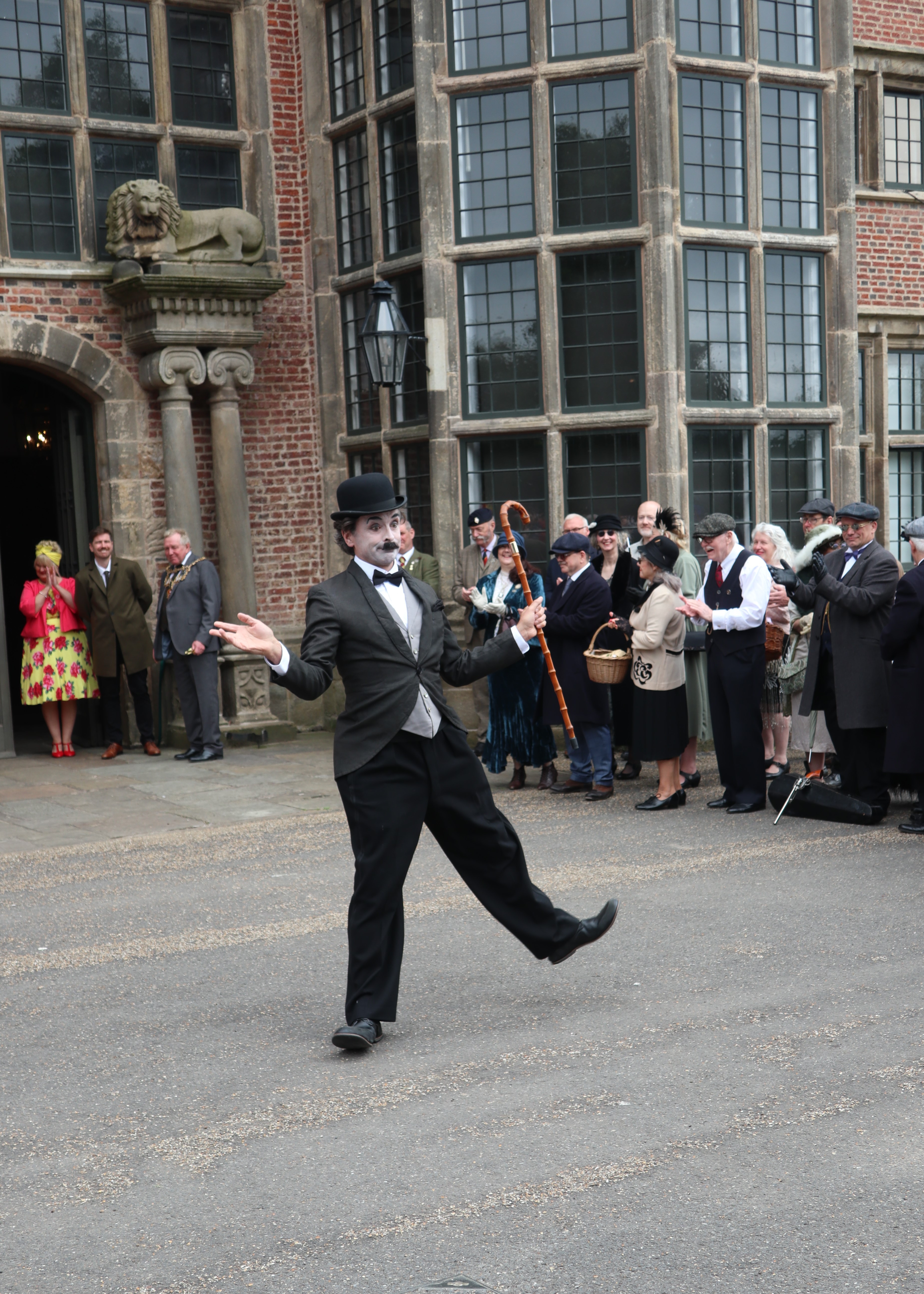 On Sunday 2nd June 2024 there was a re-enactment of the 1924 opening ceremony started-off by a speech from Chorley’s Mayor Councillor Gordon France and followed by a parade made up of many local groups to the Hall. Here a ribbon was cut by the Mayor and Mayoress Councillor Margaret France – and the main door to the building opened. This event was anything but a low key affair. The parade was headed by a jazz band, and within the throng of people there was a stilt walker, jugglers and many participants dressed in period costumes.