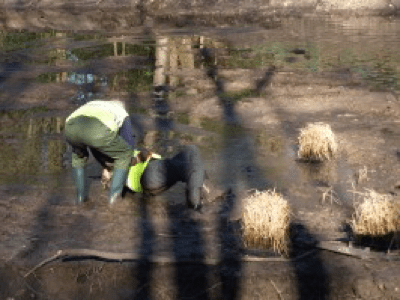 In March 2016 Friends’ volunteers were invited along with other interested groups to oversee and help the contractors in the planting of the reed bed.