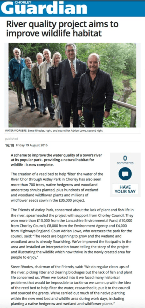 The project was also featured in a report in the Chorley Guardian in August 2016 when the project was officially recognised as being complete.