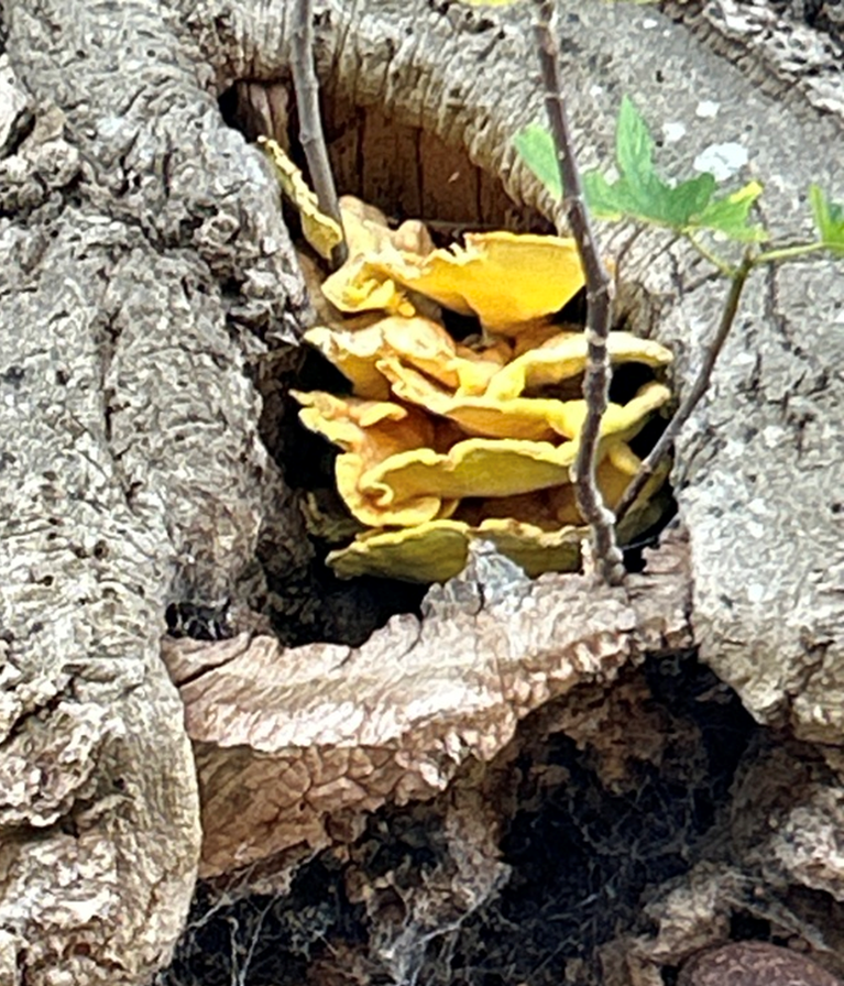 The curiously named Chicken in the Woods (Latiporus sulphureus) appears to like rotting timber.