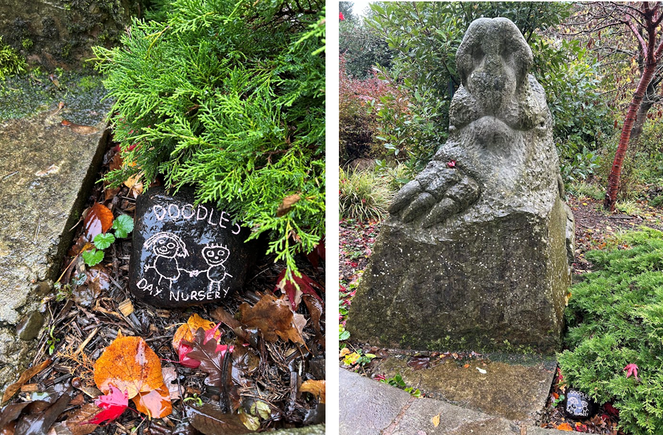 An attractively painted stone has recently been left in the Sensory Garden. By whom it is clear as it is marked with the words ‘Doodles – Day Nursery’. That facility is located not far away on Southport Road and one suspects that the children are brought to the garden to enjoy the floral displays. It is positioned at the base of the ‘Astley Mole’ sculpture.
