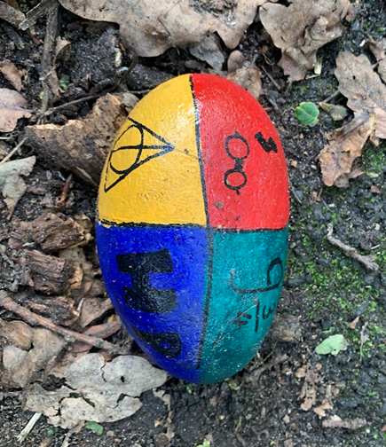 It is not the first time painted stones have been left in the Park. Below is a picture of a ‘Kindness Stone’ of about the same size. These are created typically by children and families using eyecatching designs for other people to find and keep as a way of spreading joy and encouragement.