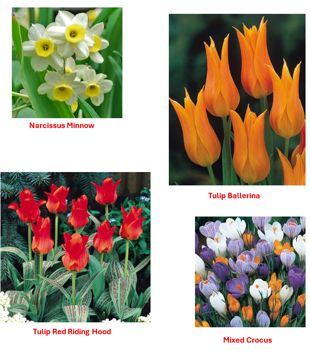 Friends’ volunteers have been busy recently planting spring flowering bulbs at the Sensory Garden, in our 20th Anniversary Flower Bed near the Hall, in the Courtyard Planters and at the Lost Fountain. The bulbs were kindly supplied to us by Chorley Council. The flowers to look out for are pictured below.