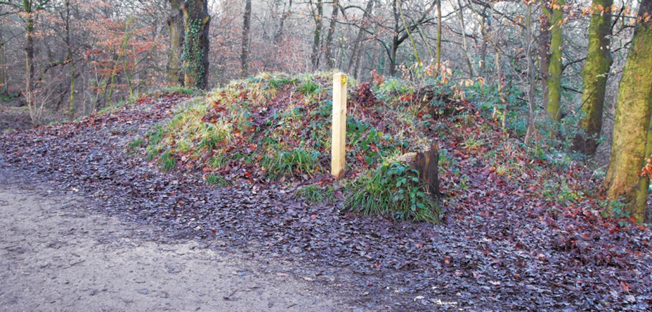 Answer: The Ice House. In the 1800’s when Astley Hall was a private residence, ice was collected from what is now known as the ‘Green Pond’(!) – which in those times of severe winters would freeze over – and be stored for use through the following year. Ice houses were a common feature of stately homes and were partly constructed underground with the top covered by an earth mound for insultation. Located in Great Wood on the Astley Park Trail (Point of Interest 3) all that can be seen of the one in the park is the earth mound, as shown below.