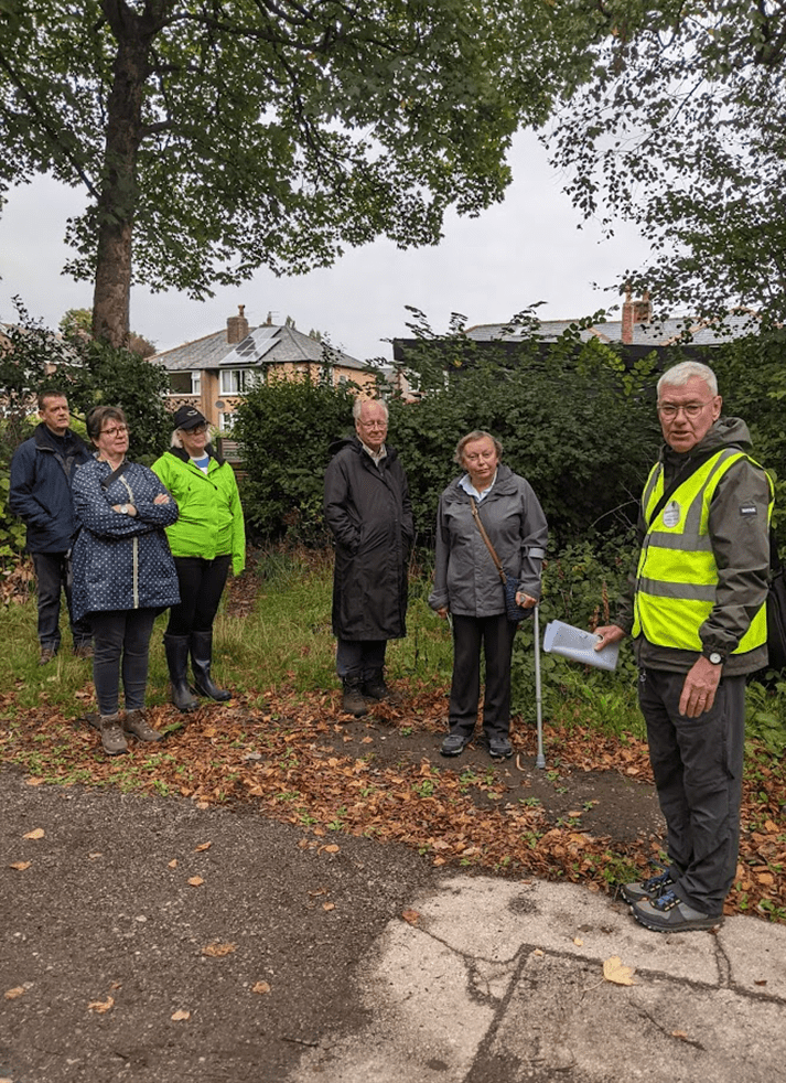 Below Friends Vice-Chair Julian Jackson, is explaining the existence of a milking parlour remnant, dating from the time the Park annually hosted the Royal Lancashire Show – between 1987 and 2002. This was just one of many historical facts about the Park imparted on the day.