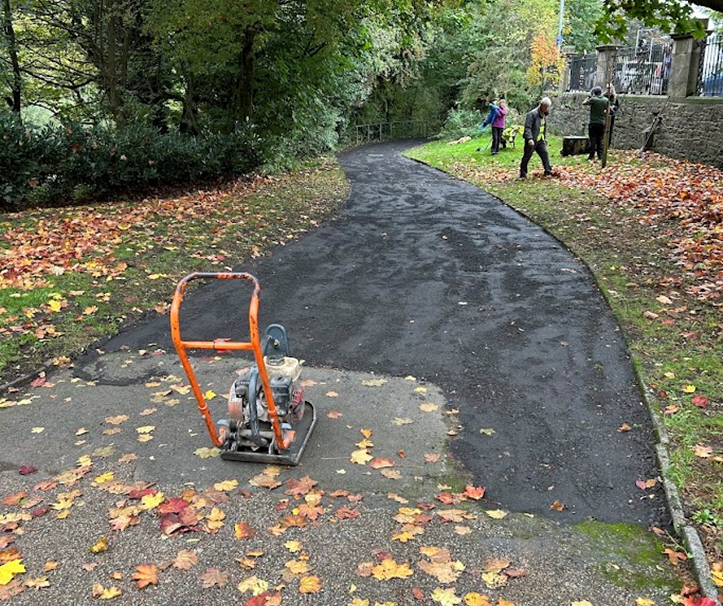 The limestone was then compacted to complete the job – a good morning’s work for the combined team of Friends’ volunteers and Council staff.