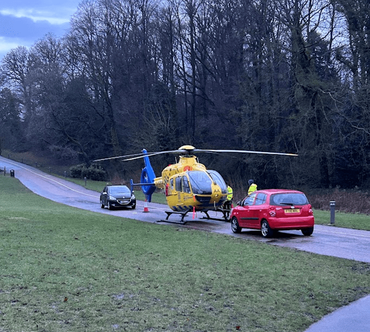 Astley Park has had an unusual visitor recently. The North West Air Ambulance helicopter had to land on the main path in the Park due to a mechanical problem. It remained there overnight before it was fixed the following day. This is not the first time the ambulance has visited the Park. A couple of years ago it landed on the playing field to attend to a patient emergency.