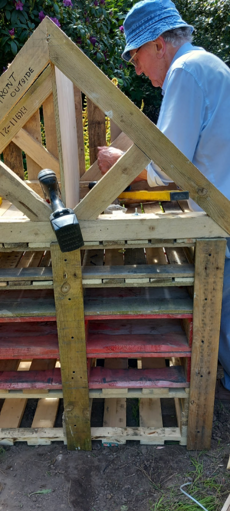 The following year Maurice Houghton, our Vice-chair at the time, took on the task of building the Bug House and decided to mainly construct it out of old wooden pallets.