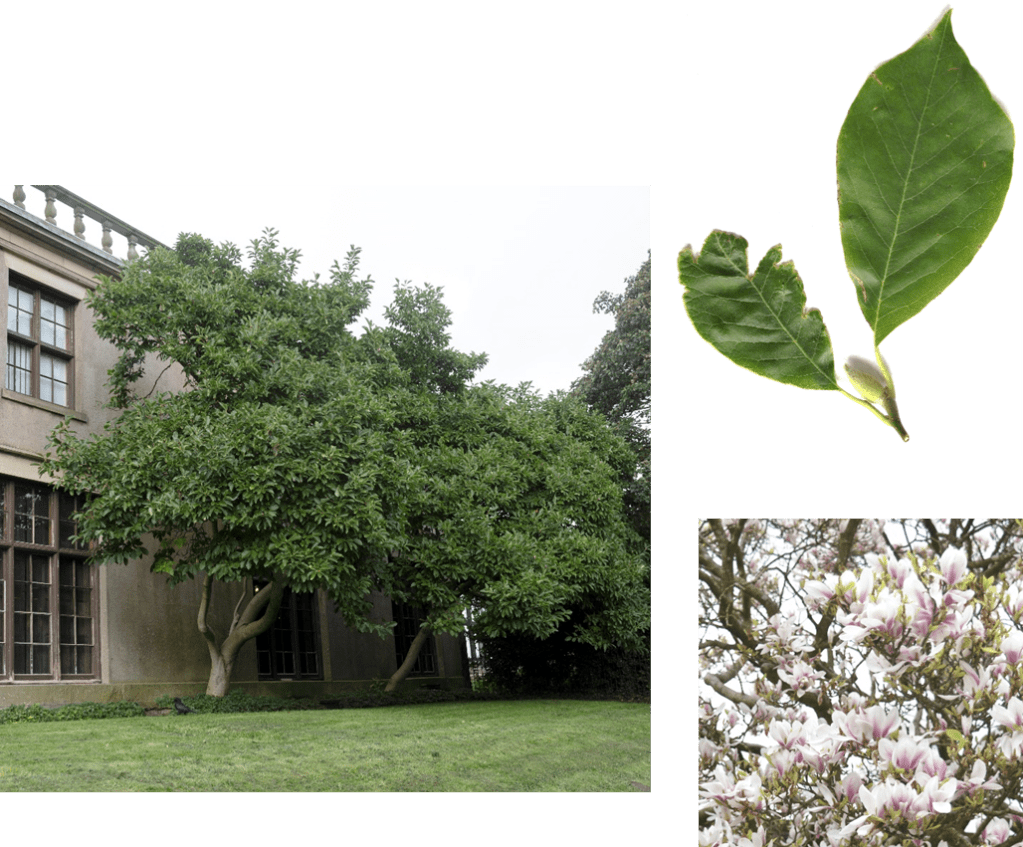 There are estimated to be over 300 species of Magnolia and most originate from China and Japan, but some from the southeastern United States. Some of the American species can grow to a great height but those from eastern Asia tend to be more shrub size. Ancestors of modern Magnolias have been dated in fossil records to 95 million years ago. The one in Astley Park growing next to the eastern side of Astley Hall is probably a species from the subgenus Gwillimias. This specimen has white/pink flowers that appear in the spring before the leaves.